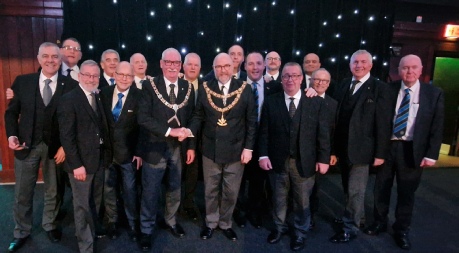 Bro. Duncan Mulholland, Right Worshipful Master and Bro. Colin Campbell, Substitute Provincial Grand Master made the presentation which included a special 70th. Anniversary Jewel.